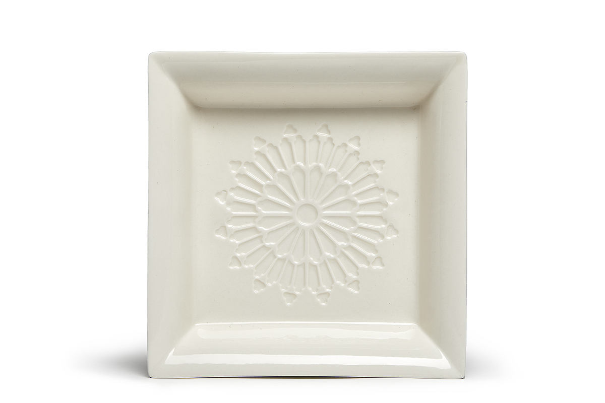 The Rosace tray is inspired by cathedral stained glass, adding an artistic touch to your home. Handcrafted in Spain by Mud Ceramic, each piece is unique. Perfect for holding keys, jewelry, or small items while decorating your space with style.