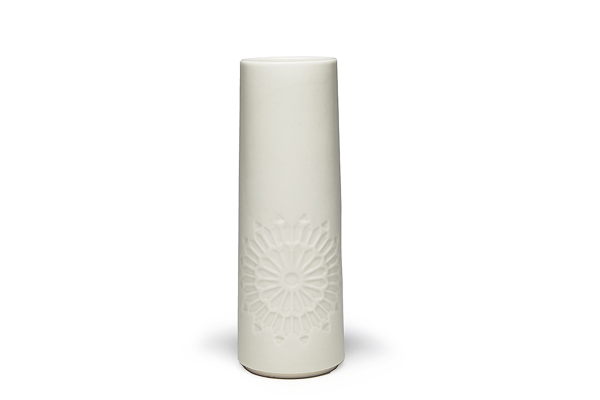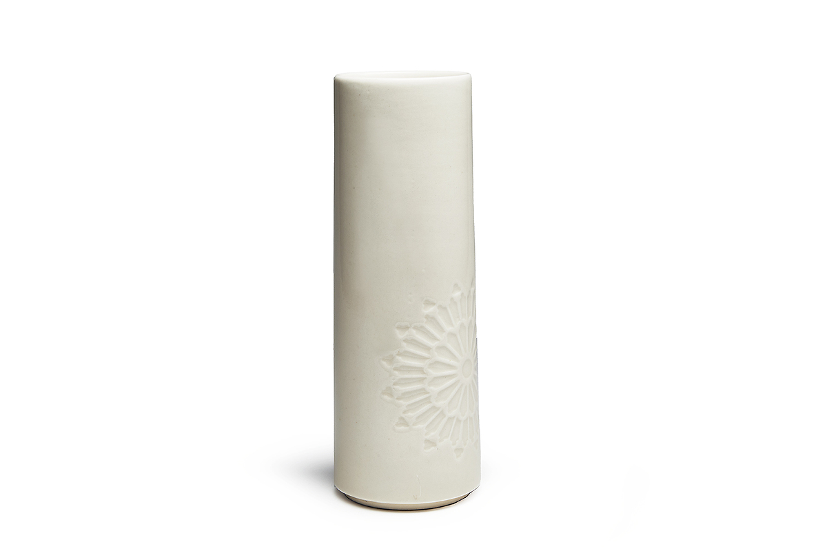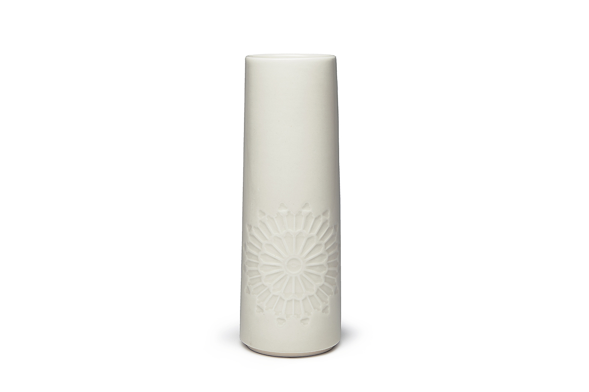The Rosace Vase is inspired by cathedral stained glass windows and is handmade in Spain by Mud Ceramic.