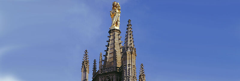 Original work by: Jean-Luc Paillé Jean-Luc Paillé - Tour Pey-Berland, statue de Notre-Dame d'Aquitaine couronnant la tour - © Jean-Luc Paillé - Centre des monuments nationaux