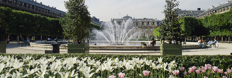 Jardin du Palais-Royal, allée de tilleuls, chaise et groupe sculpté (stretched canvas)