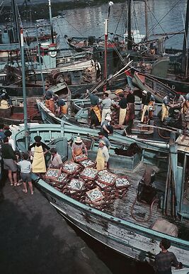 Retour de la pêche à la sardine sur le port de Concarneau (art prints)