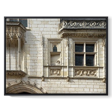 Palais Jacques-Coeur, détail de la façade sur rue :Macée de Léodepart accoudée à une fausse fenêtre (framed canvas)