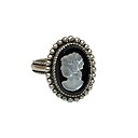 Matériaux et caractéristiques Base en étain avec plaquage or fin. Camée noir en résine (1,8 cm) et cristaux en résine. Anneau ajustable (50-58). Poids : 9 g.