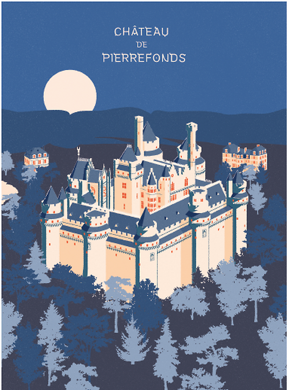Illustration exclusive de l'artiste Florent Bodart, représentant le majestueux Château de Pierrefonds