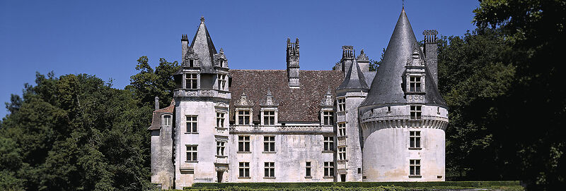 Château de Puyguilhem, façade principale du grand logis Renaissance avec, à gauche, la tour d'escalier (affiches d'art)