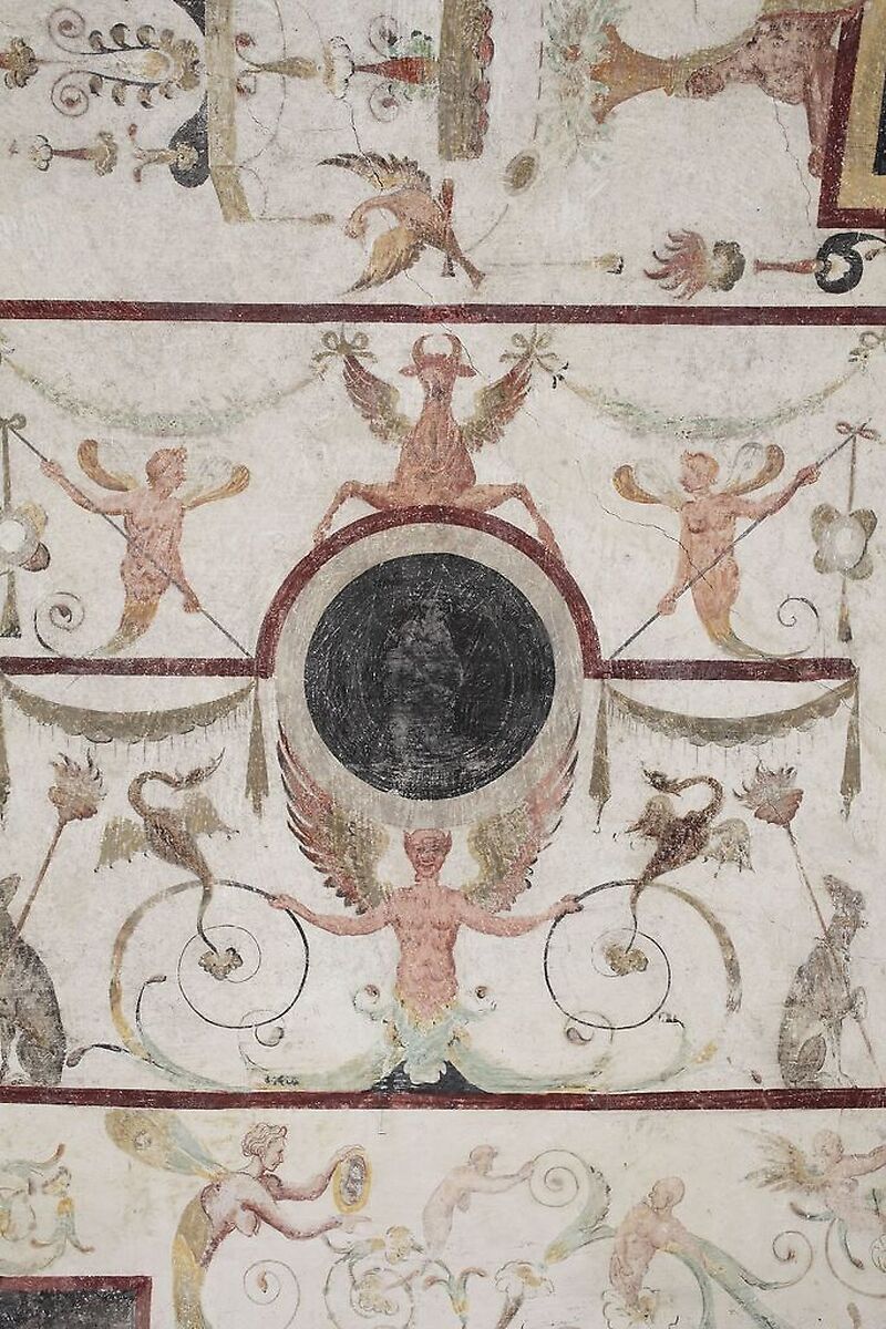 Château de Chareil-Cintrat, premier étage, tour sud-ouest, décor peint, détail (affiches d'art encadrées)