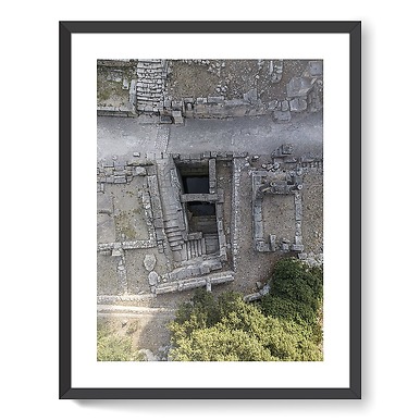 Site archéologique de Glanum, la source sacrée, vue aérienne en plongée (affiches d'art encadrées)