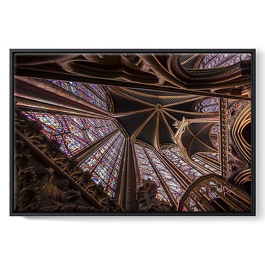 Sainte-Chapelle de Paris, chapelle haute, vue en contre-plongée de l'abside et de la tribune des reliques (toiles encadrées)