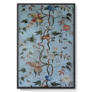 Château de Talcy, salle à manger, lé de toile peint à l'huile à motifs de fleurs (toiles encadrées)
