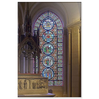 Basilique cathédrale de Saint-Denis, déambulatoire, verrière les allégories de Saint-Paul (panneaux acryliques)