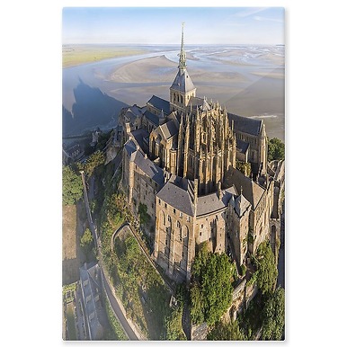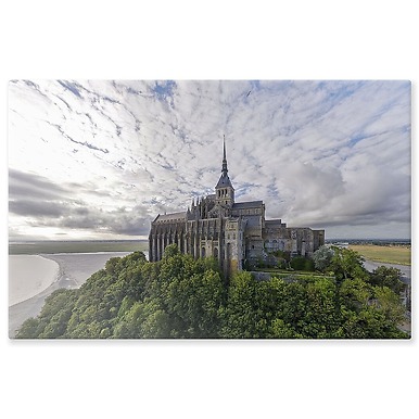 Abbaye du Mont-Saint-Michel, vue aérienne depuis le nord (panneaux aluminium)