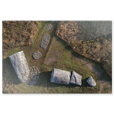 Vue aérienne du Grand menhir brisé (panneaux aluminium)