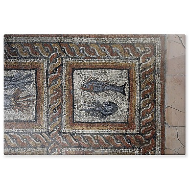 Villa gallo-romaine de Montcaret, piscine froide, détail du pavement mosaïqué (panneaux aluminium)